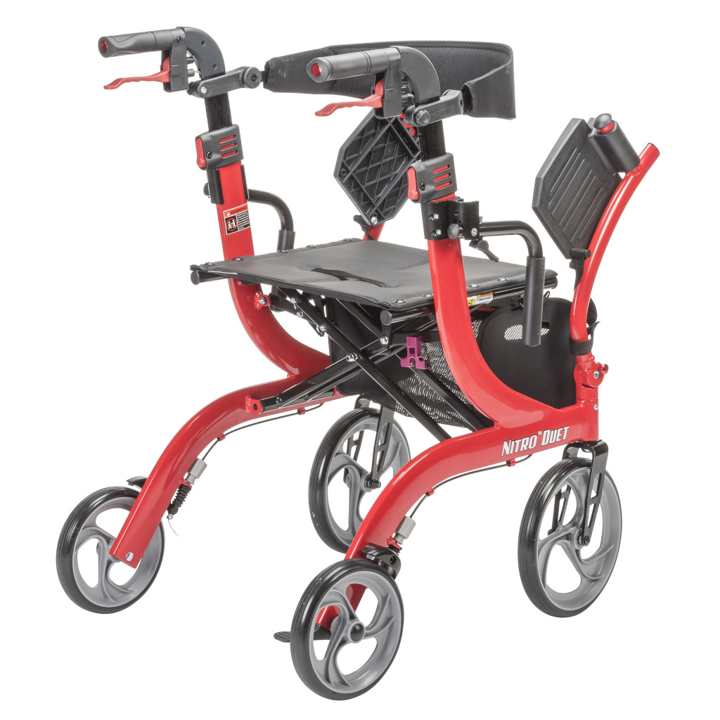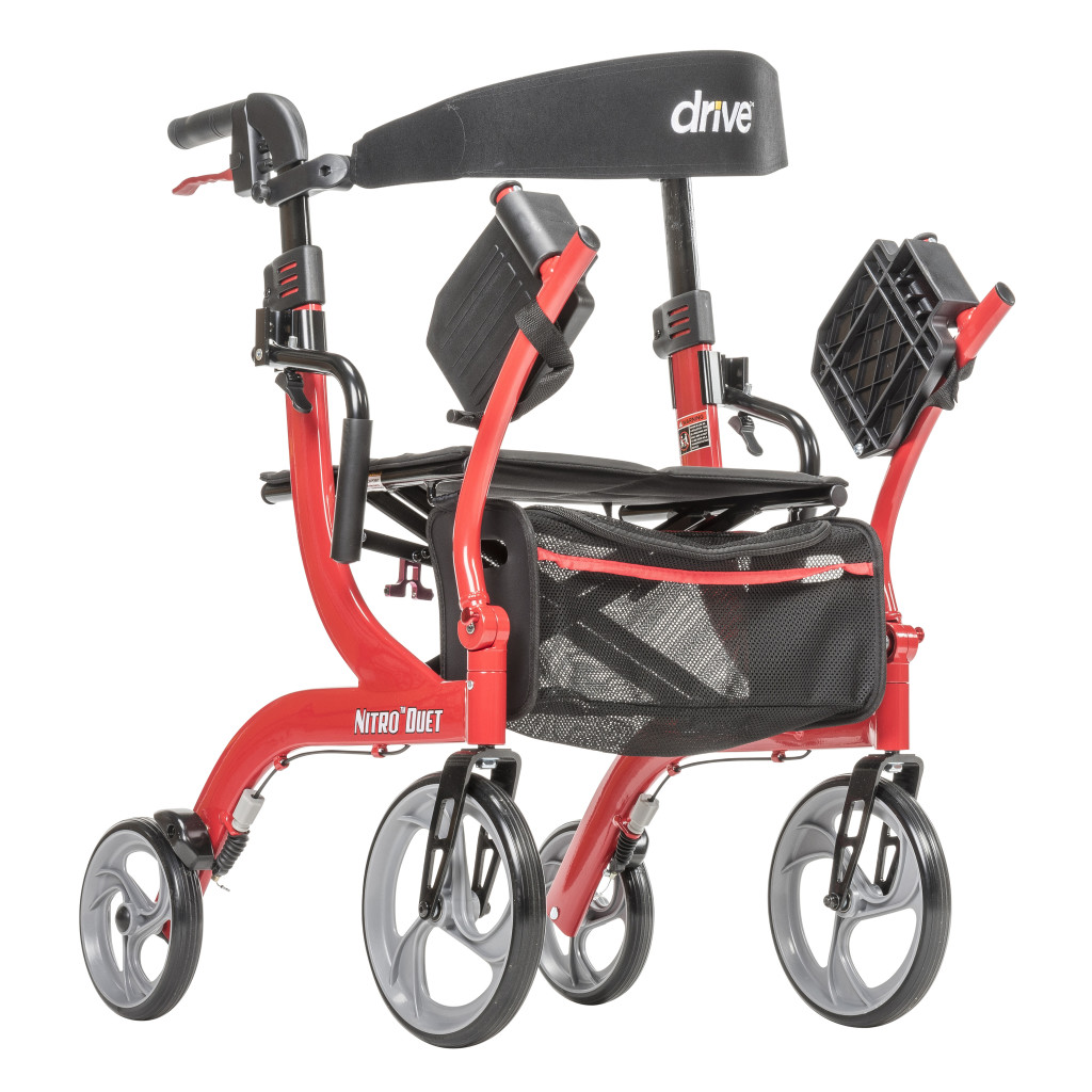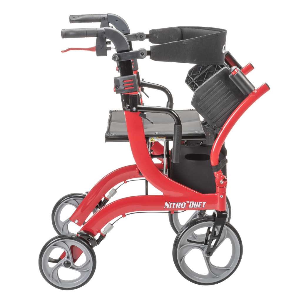 - The tool-free two-position contoured backrest is reversible depending on whether you are using the Nitro Duet as a rollator or transport chair