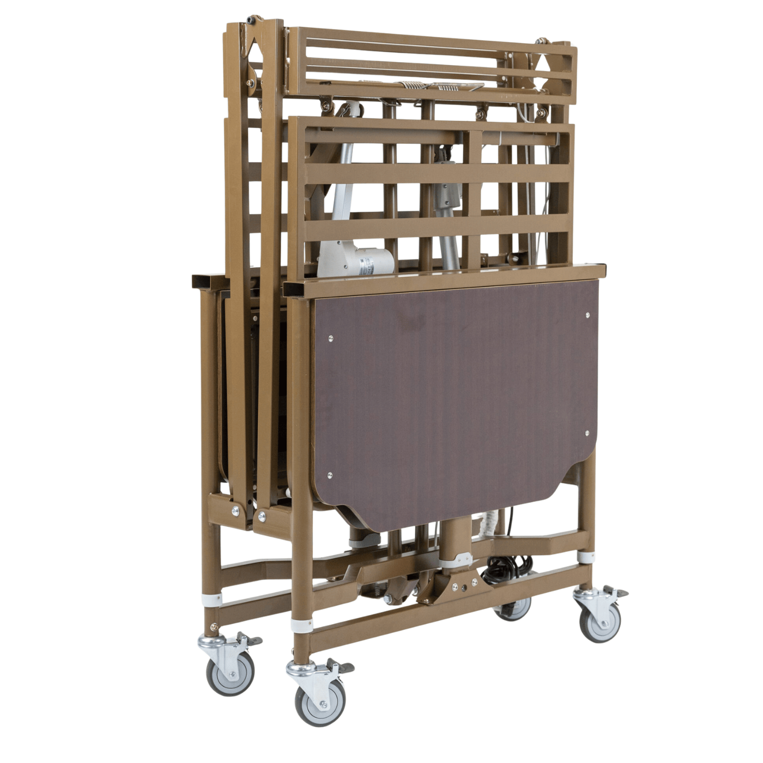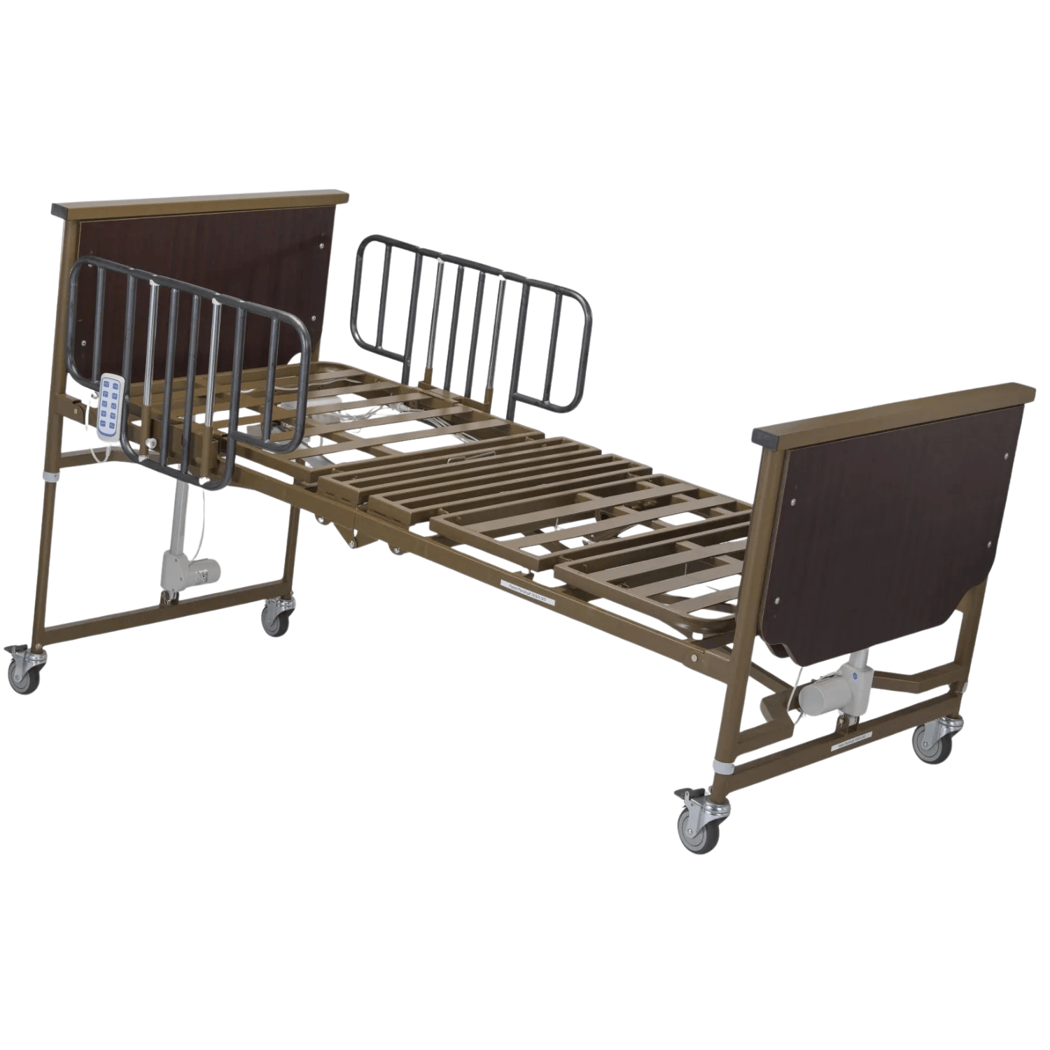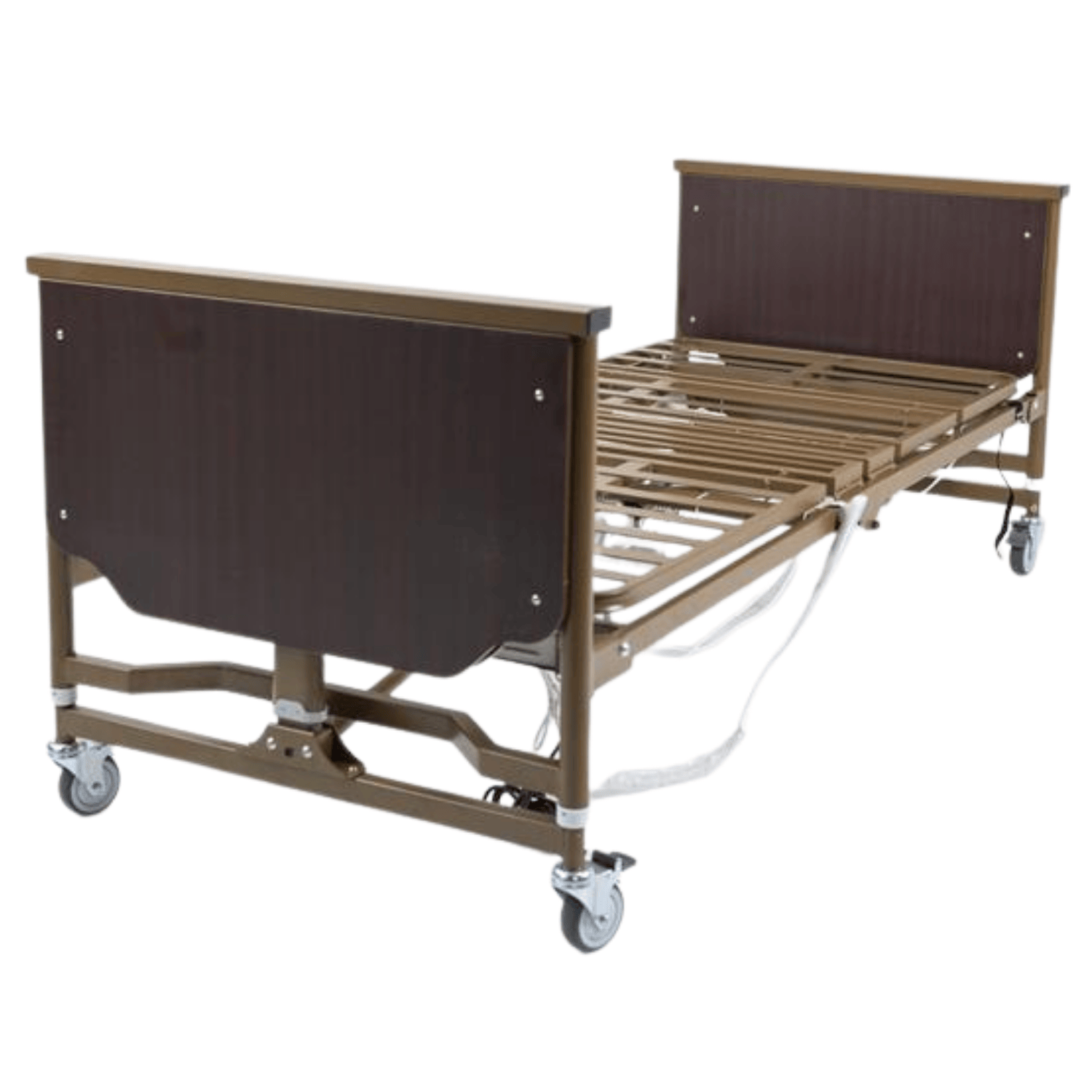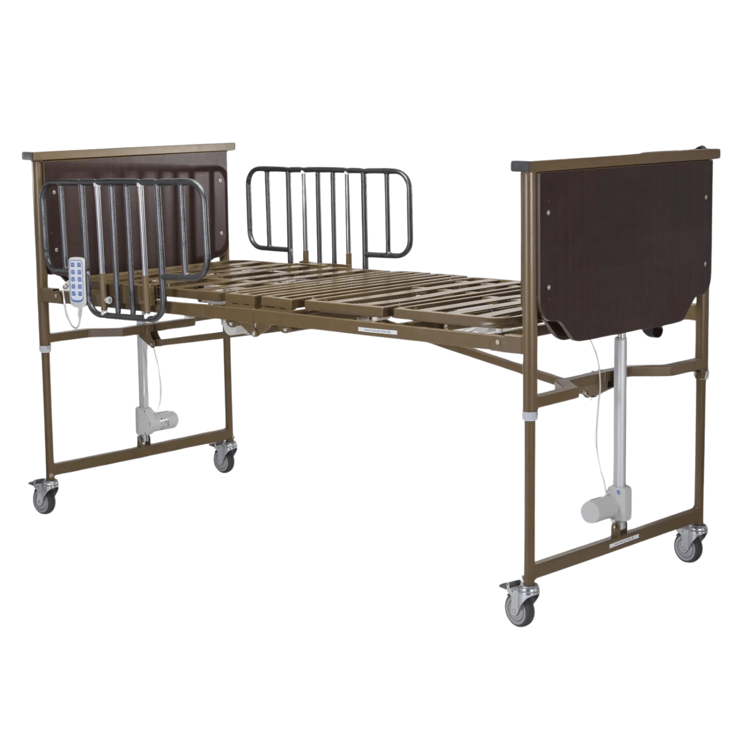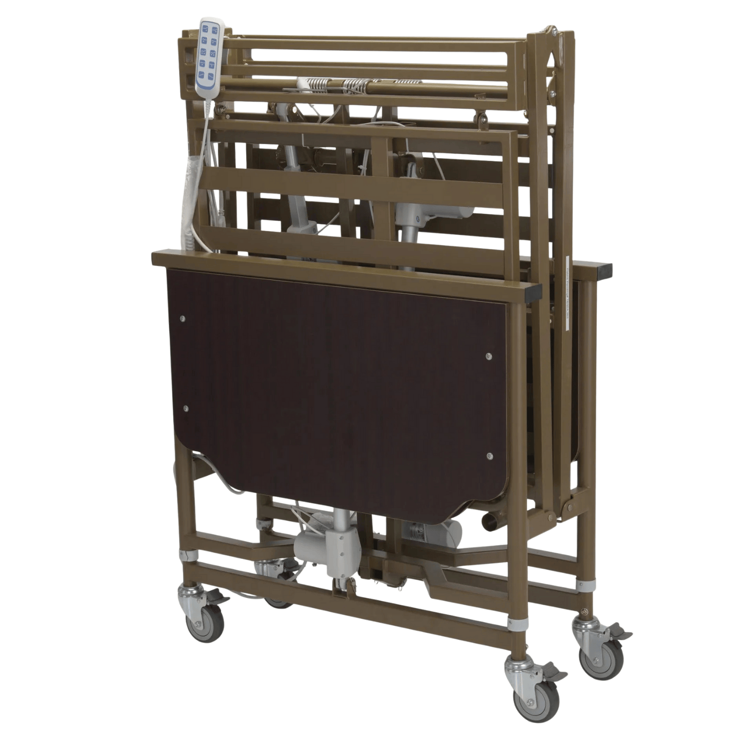 - The Elevated Care Hospital bed that is available for rental is The ProLine Fold N Go Full Electric Bed