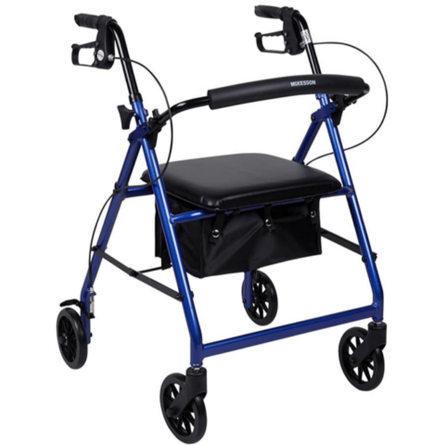 McKesson Rollator 300 lbs. Aluminum 32 to 37″ Handle Height (1 Each). Deluxe loop-lock system operates like a bicycle hand brake to slow down or temporarily stop and easily locks into stationary position by pushing handle into down-position.