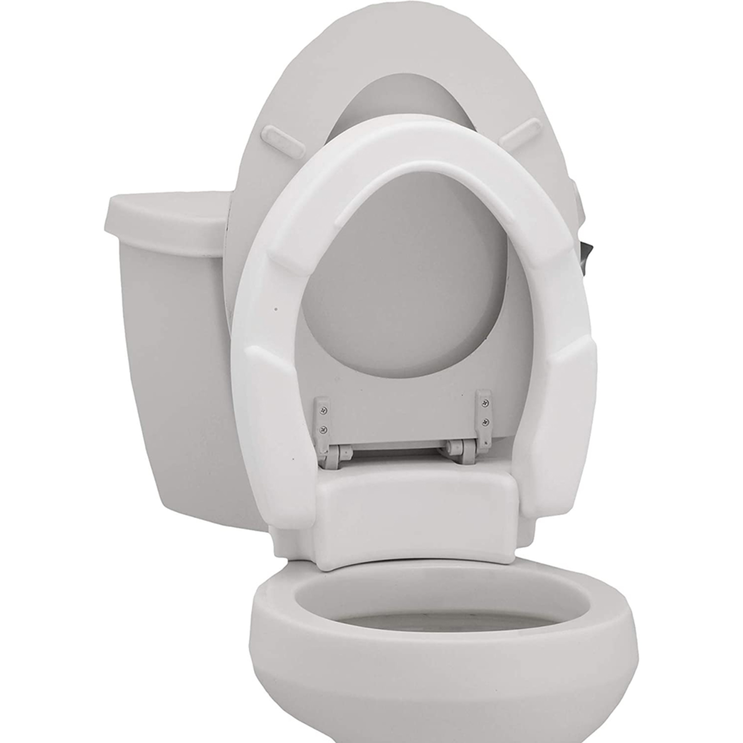 The NOVA Elongated Toilet Hinged Riser (8346-R) bolts directly to the toilet for added safety and adds 3.5″ to the height of the toilet seat to aid in getting on and off the toilet. The hinged design allows the Toilet Riser to come up and down, makes cleaning easier and it can be used with original toilet seat and lid. Installs easily. For use with Elongated Toilet Seats.