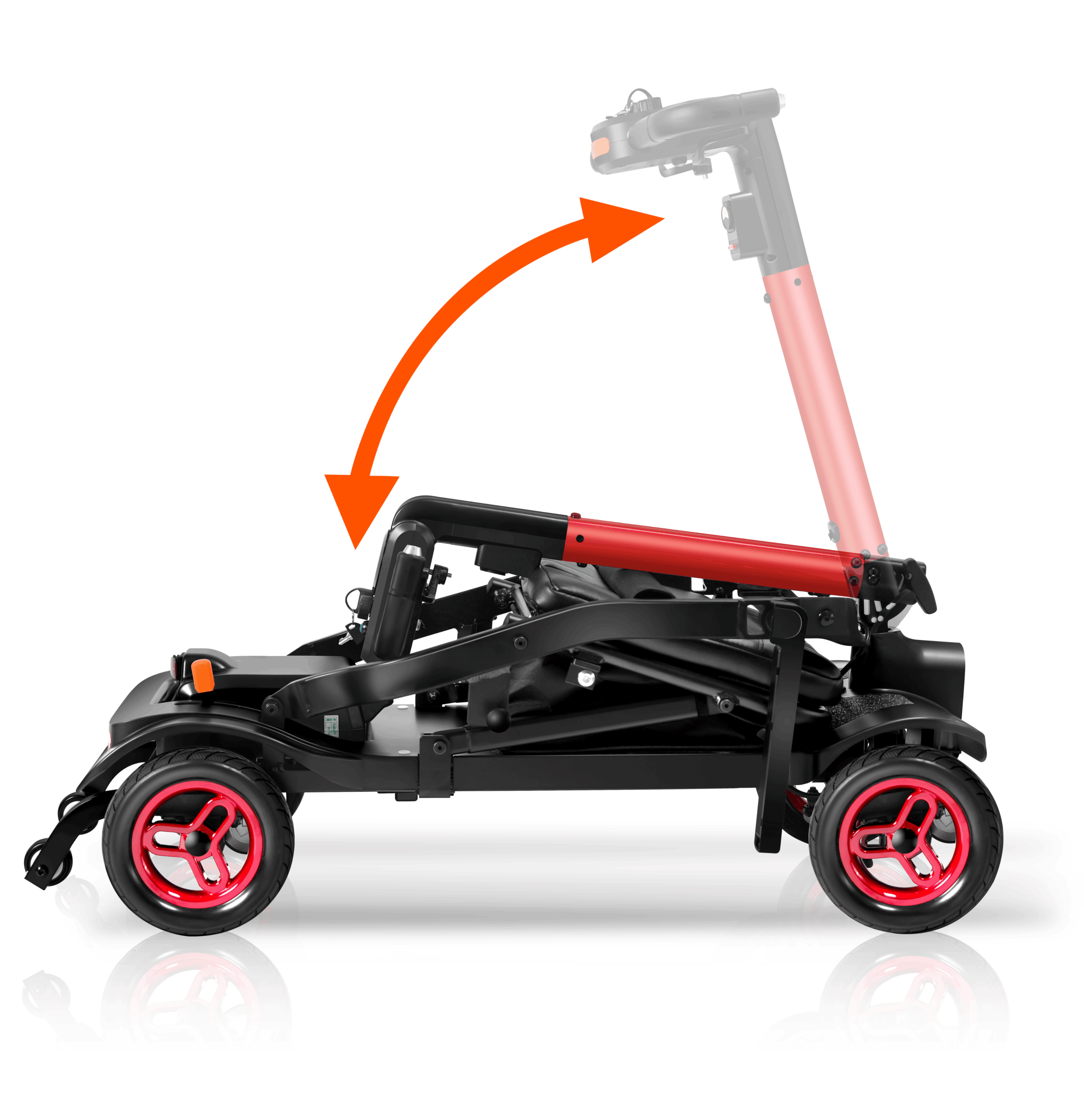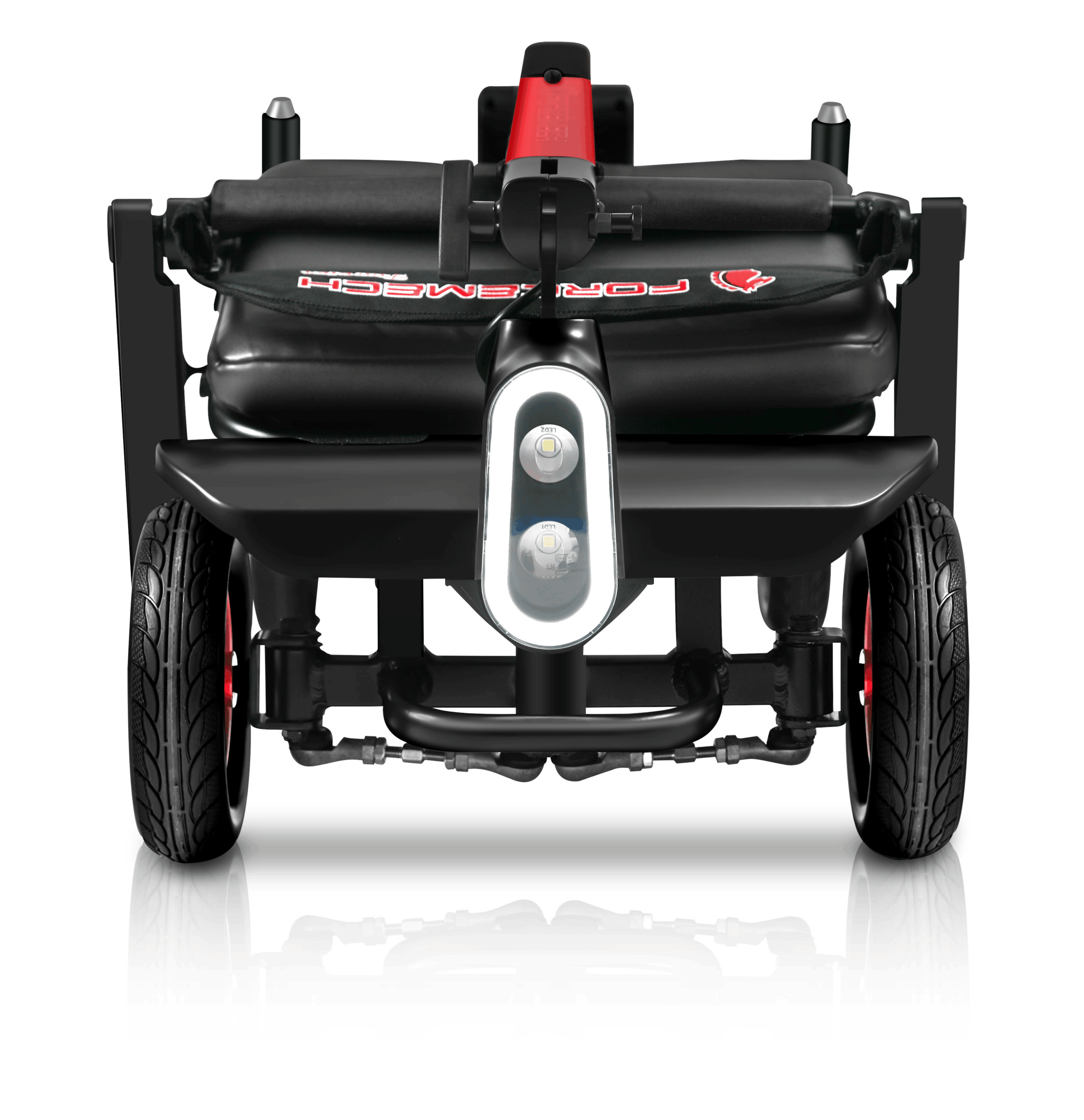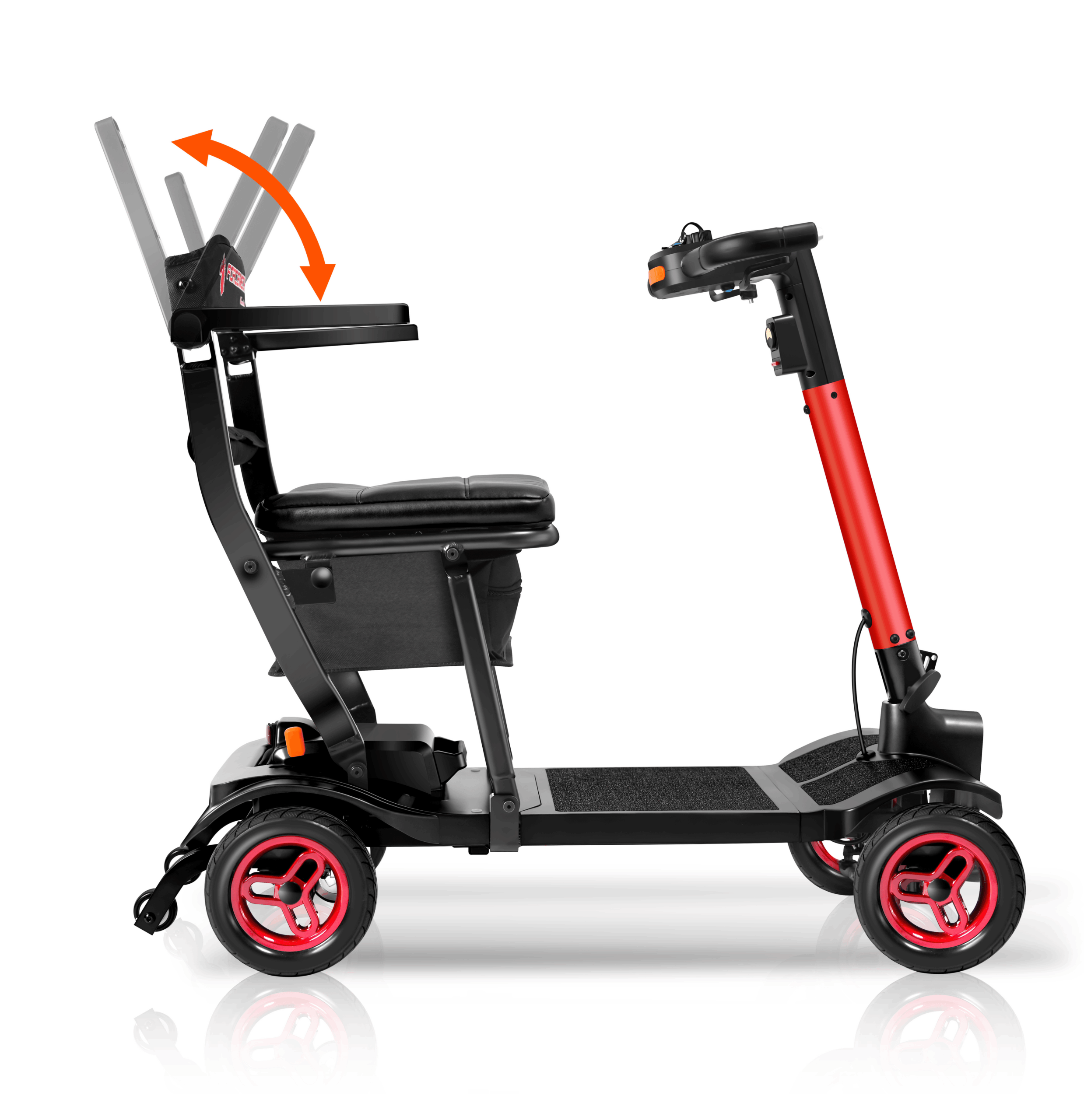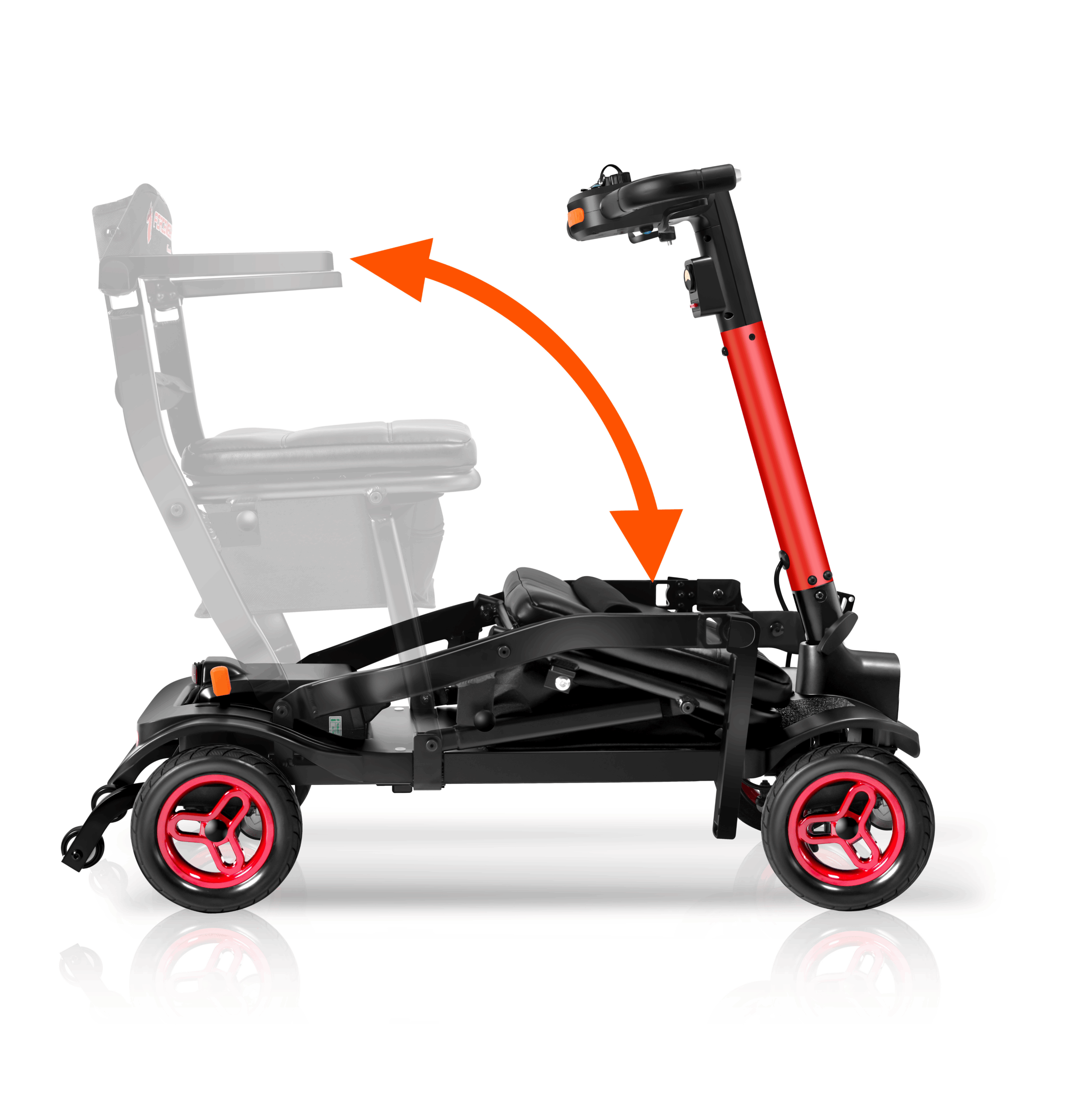 The Traveler is a power scooter designed by Forcemech for effortless portability, folding in as little as 5 seconds for quick storage and transport. Weighing just 38lbs without a battery, it’s sleek, portable, and ready for easy transport.